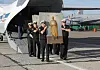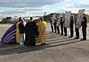 Both Northern Fleet Commander Nikolay Yemenov and Severomorsk Bishop Mitrofan were present to hail the plane.