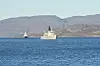 The two ships accompanied each other into the Norwegian fjord and the Polyarnaya Zvezda in the Kirkenes port ultimately placed itself side-by-side with the Nordkapp.