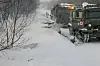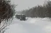 The photo gallery shows how a two-link Aleut all-terrain tracked vehicle came driving along a snow-covered road in the taiga forest, followed by what seems to be a two-section DT-10PM all-terrain tracked vehicle.