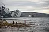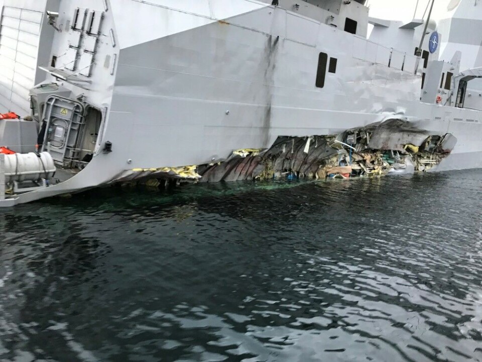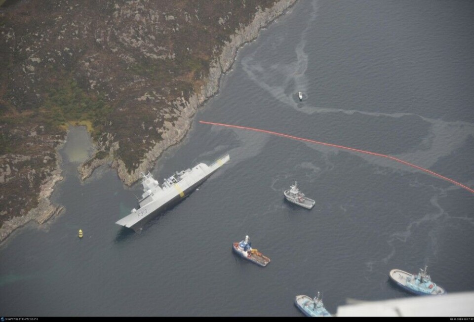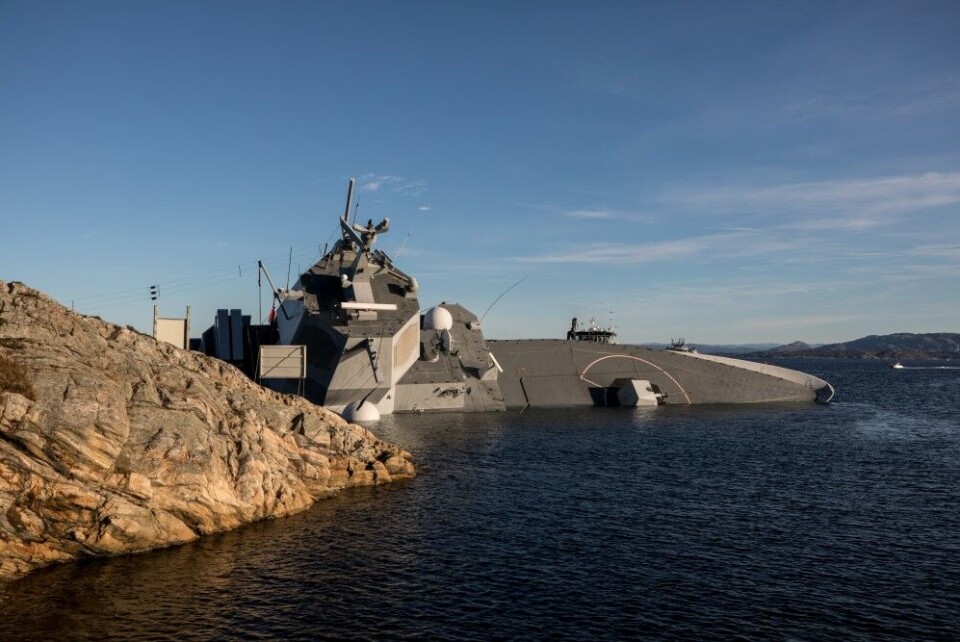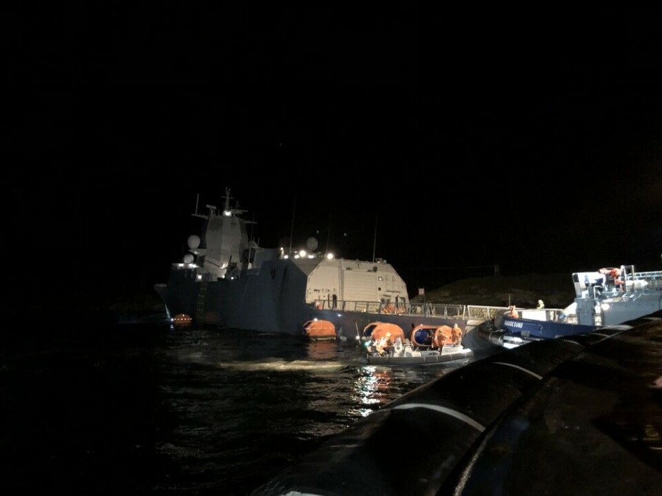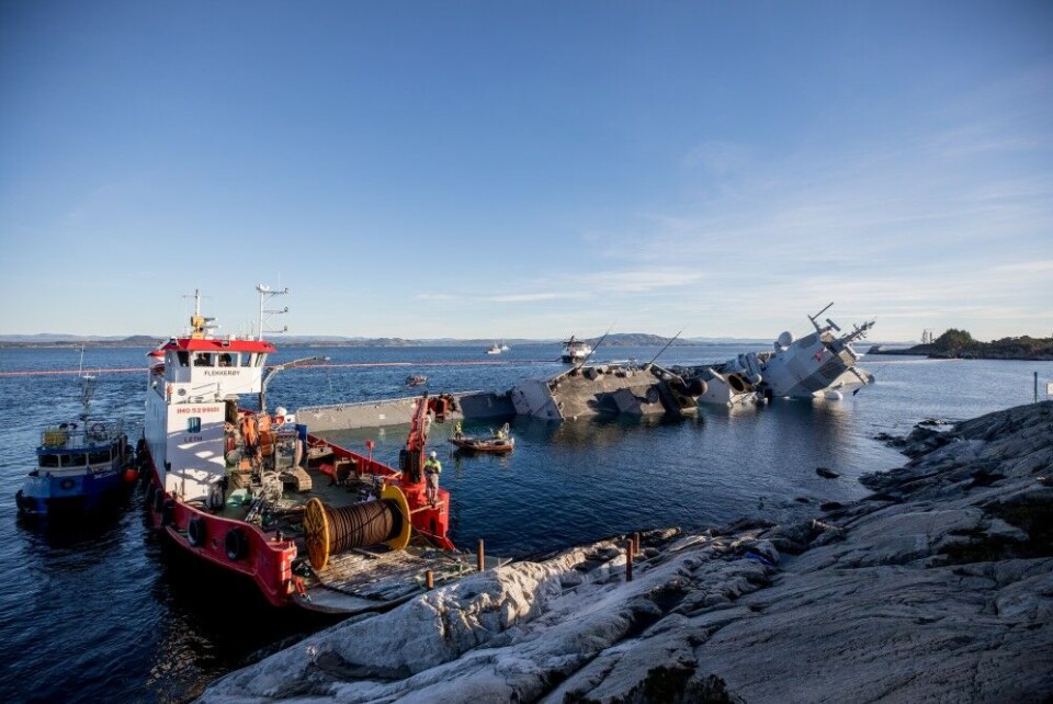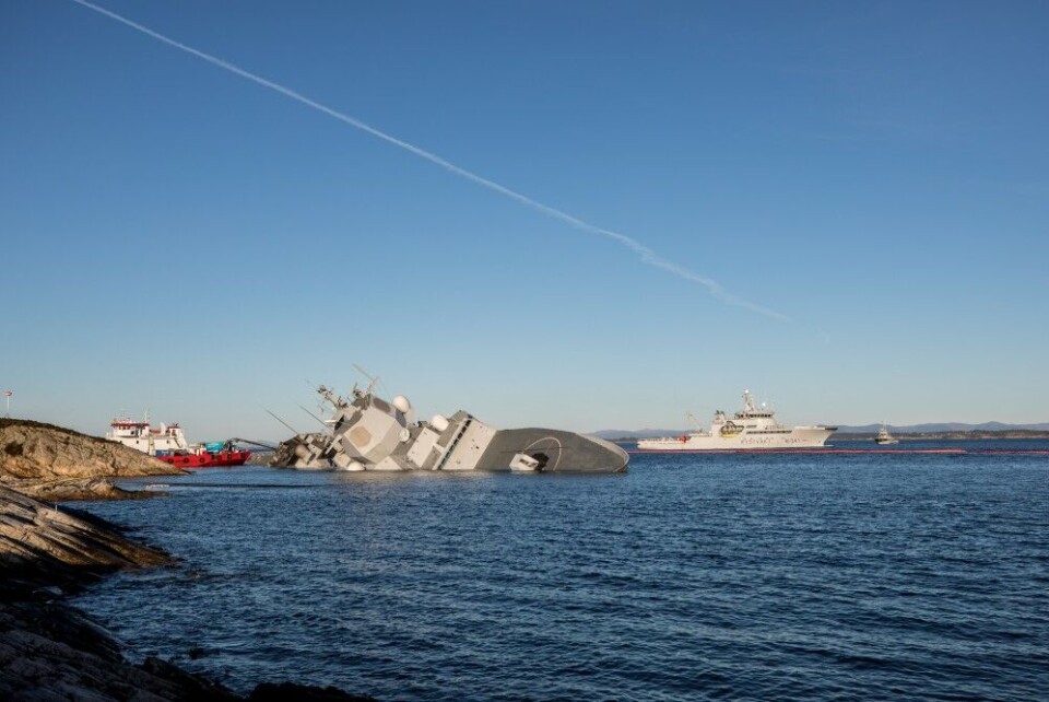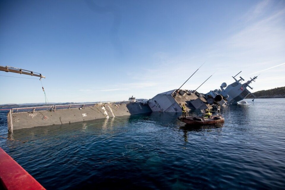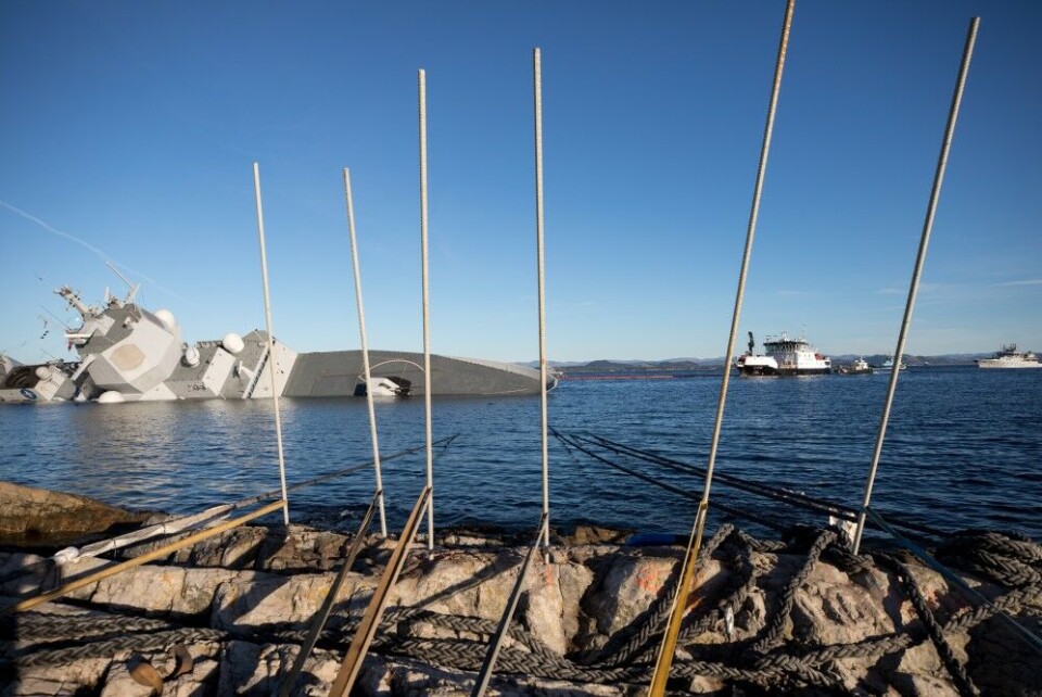 While an official investigation is launched by the marine department at the Norwegian Accident Investigation Board (AIBN), the navy works around-the-clock to secure the wrecked frigate. For now, the immediate danger of sinking is avoided. The frigate is tightened to the embankment rocks with steel wires. After secured, work will start to unload the weapons.